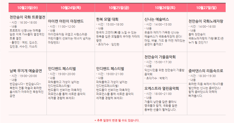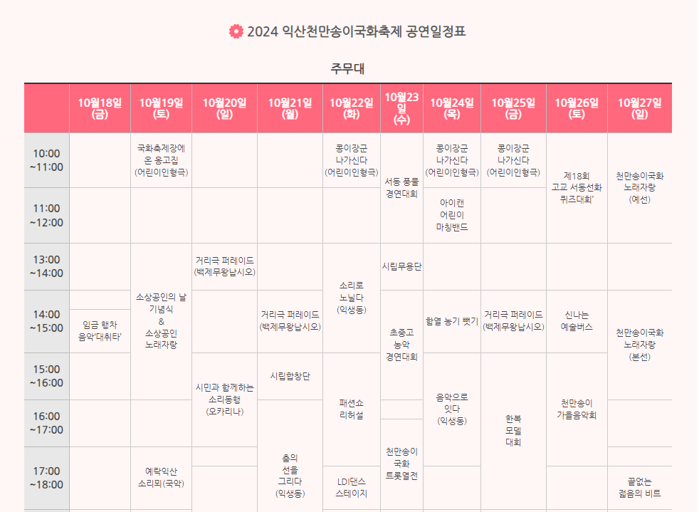 - 개최기간: 24. 10.18(금) ~ 10.27(일) 10일간