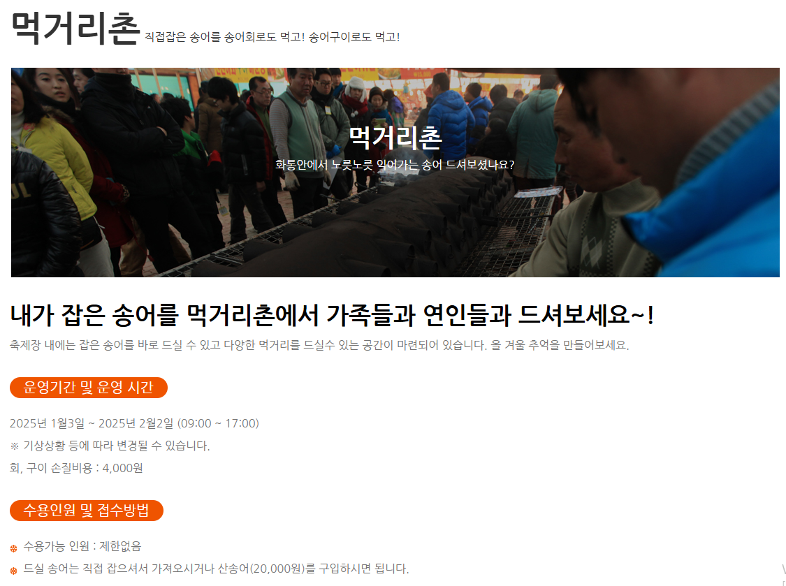 - 텐트낚시는 혼란을 막기 위해 참가 일주일전 온라인 예약