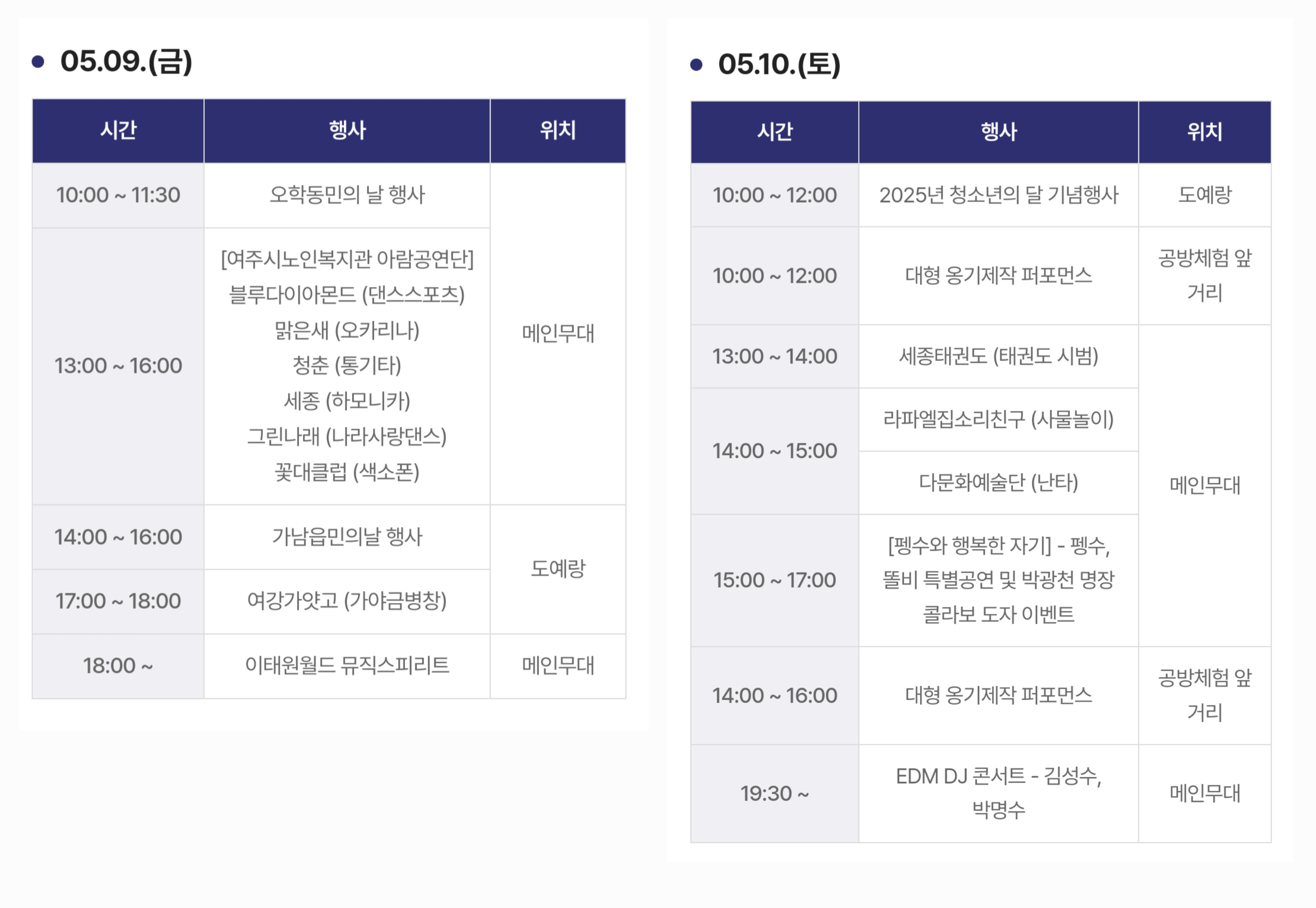 기간: 2025년 5월 1일(목) ~ 5월 11일(일)